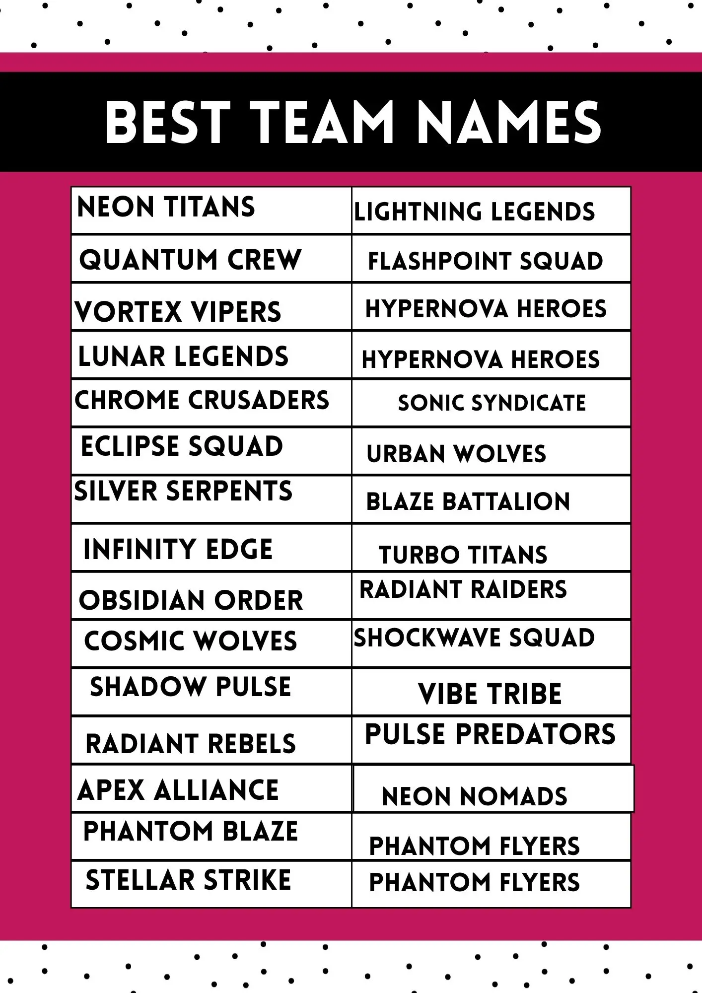 - Match your vibe – If your group loves puns, pick something witty; if you’re competitive, go for something bold.